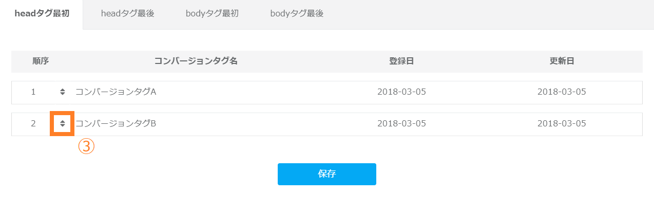 タグ管理>設置順設定