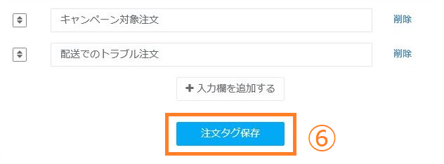 ⑥「注文タグ保存」ボタンをクリックしていただければ設定完了となります。