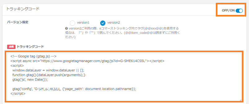 ③トラッキングコードの欄にGoogle Analyticsから生成されるトラッキングコードを貼り付けてください。