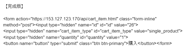 ②無色:購入ボタンタグのデフォルトのHTMLです。編集の必要はありません。