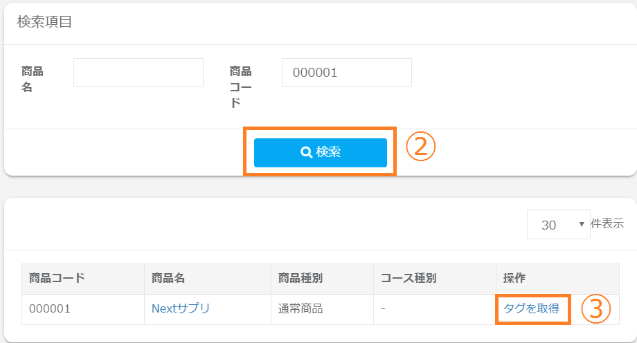 ②購入ボタンタグを取得したい対象の商品を検索します。