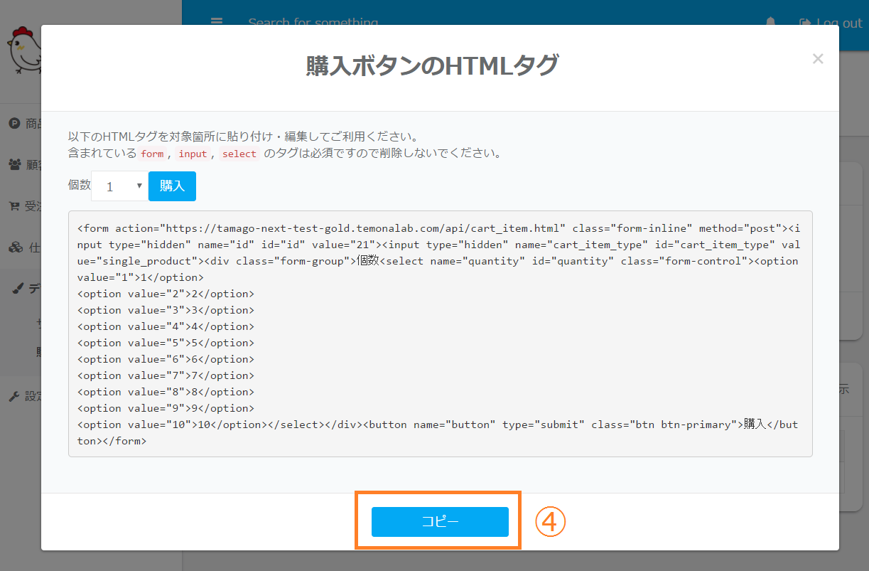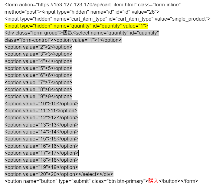 ④灰色:購入ボタンタグのデフォルトのHTMLから削除します。