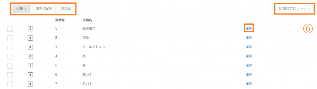 ⑥はじめはデフォルトでCSVで出力可能な項目が表示されています。こちらを必要な形式に編集していきます。