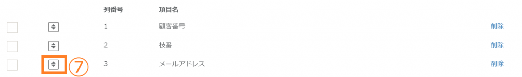 ⑦項目の並べ替えをする場合は、ドラッグ&ドロップで変更が可能です。