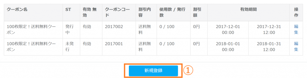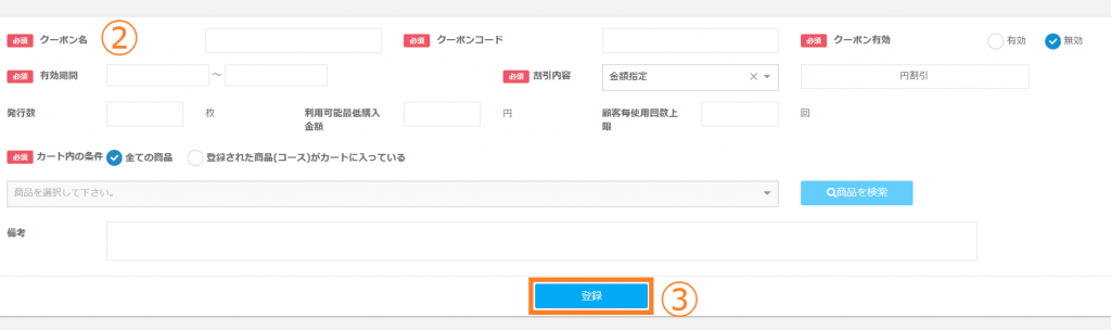 ③「登録」ボタンをクリックするとクーポン情報が登録されます。