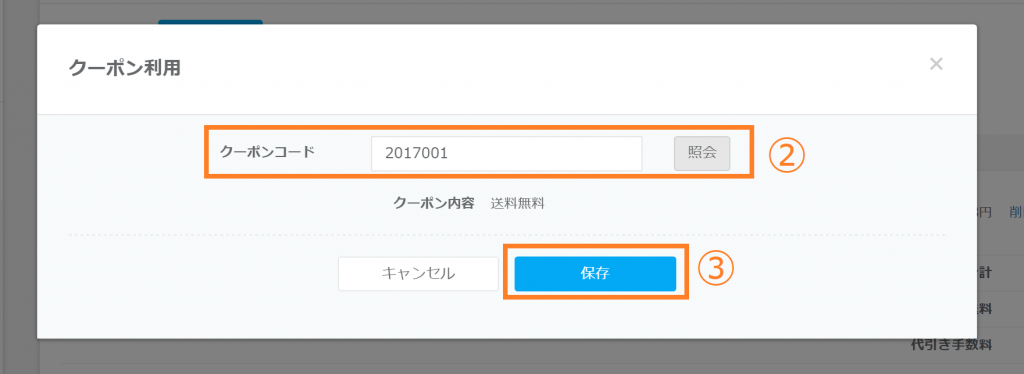 ③クーポンが使用可能な場合は内容が表示されるため、「保存」ボタンをクリックします。