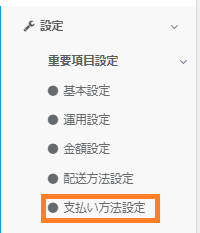 画面左のメニューバーより【設定】>【重要項目設定】>【支払い方法設定】をクリックしてください。