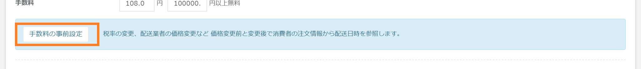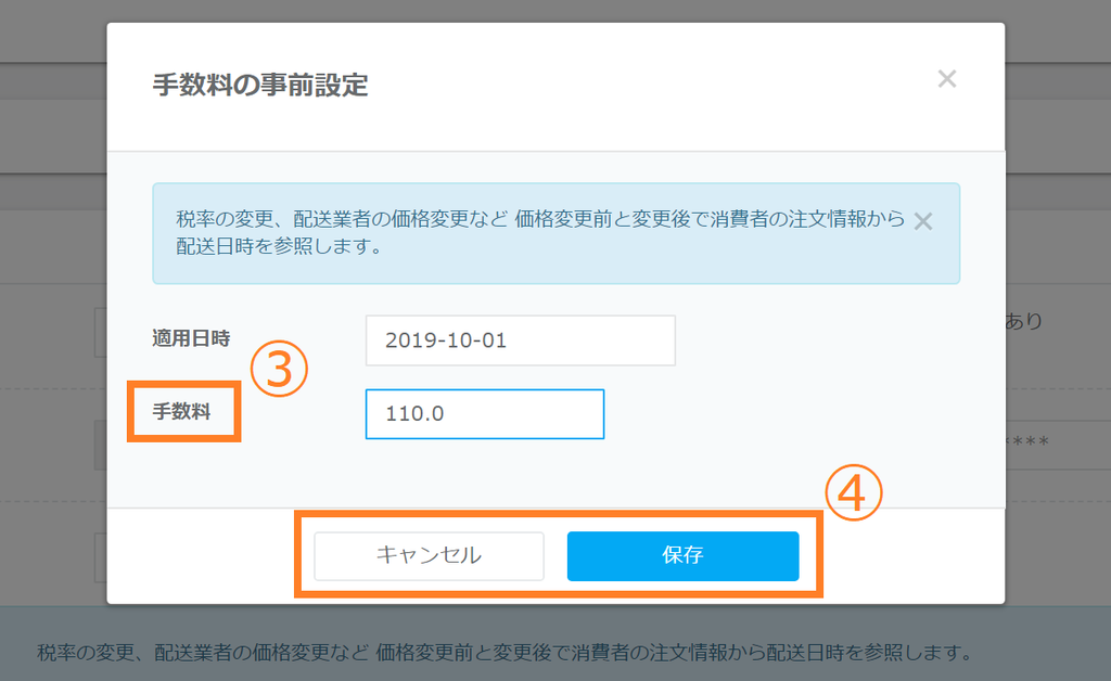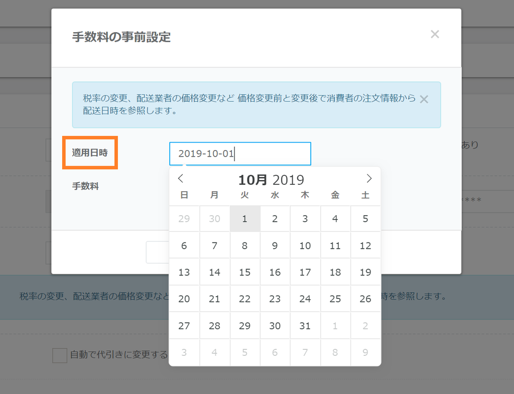 手数料を変更されるショップ様はこちらで事前に金額の設定が可能です。