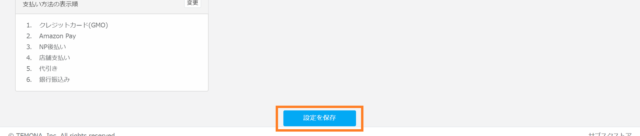 ①基本情報>支払い方法の表示順の「変更」ボタンをクリックしてください。