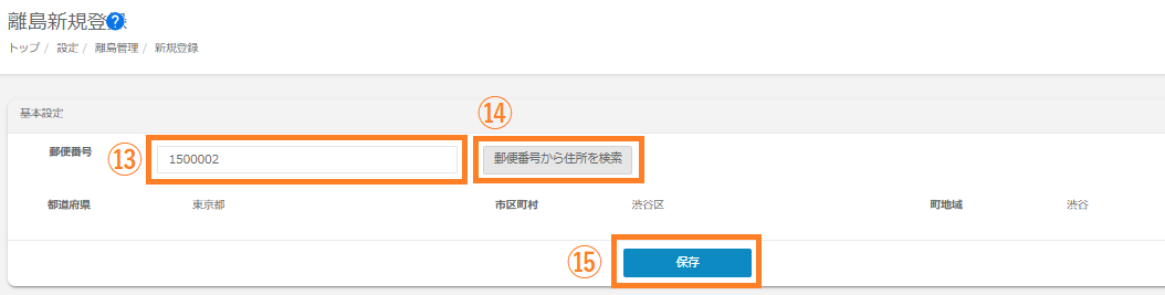 ⑬離島登録したい地域の郵便番号を入力します。