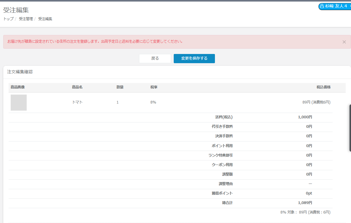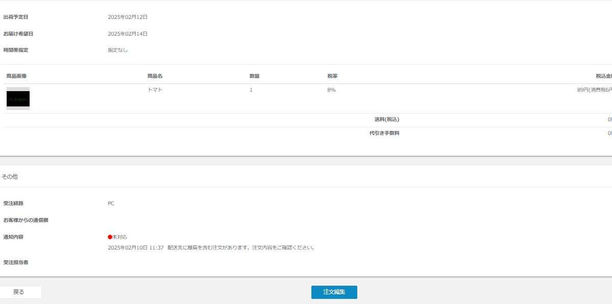 以上でWeb上の離島の注文の編集は完了です。
