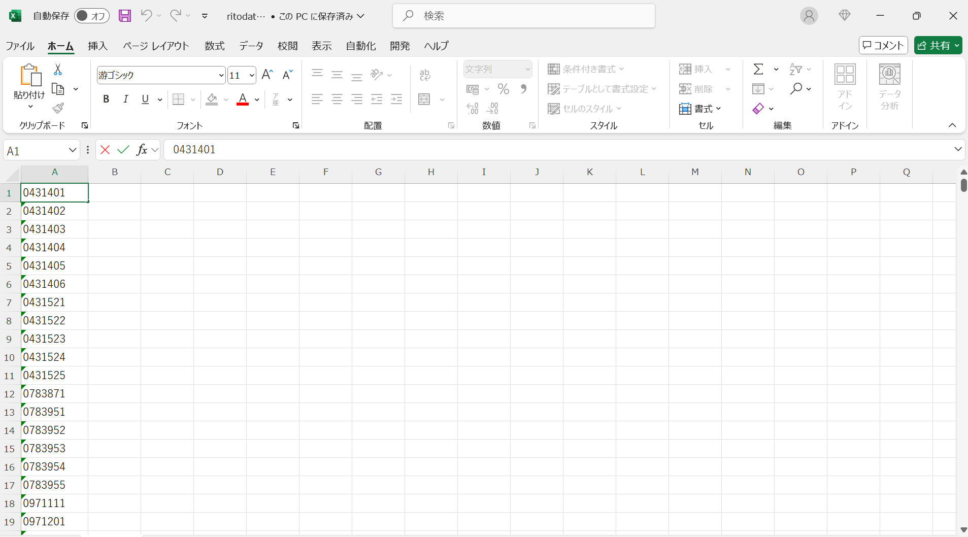 ※ダウンロードしたデータは「xlsx形式」のため、「csv形式」に変換する必要がございます。