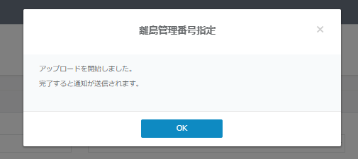 離島データの取り込み完了メッセージが表示されます。