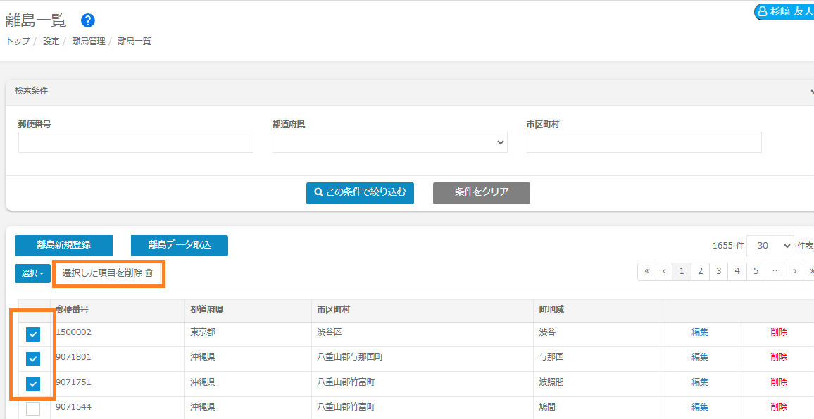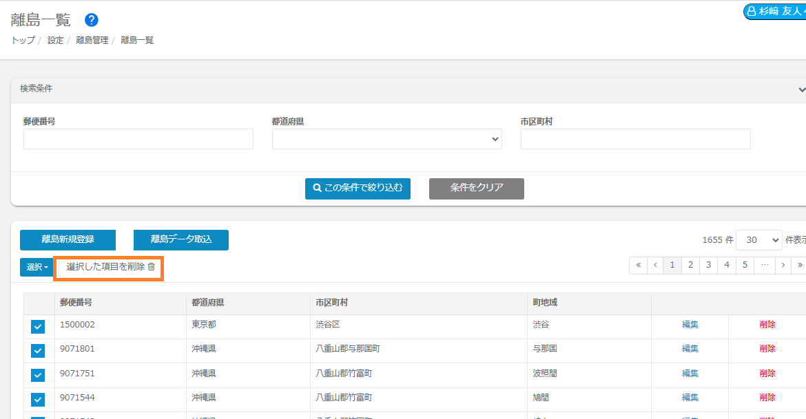 【複数の離島データを削除する場合】