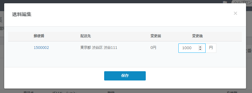 ⑦変更後の送料(税込み)を入力し、保存をクリックします。