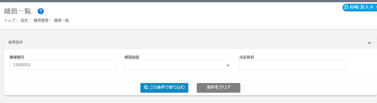 ※すべての項目に入力がない場合、すべての離島データが表示されます。