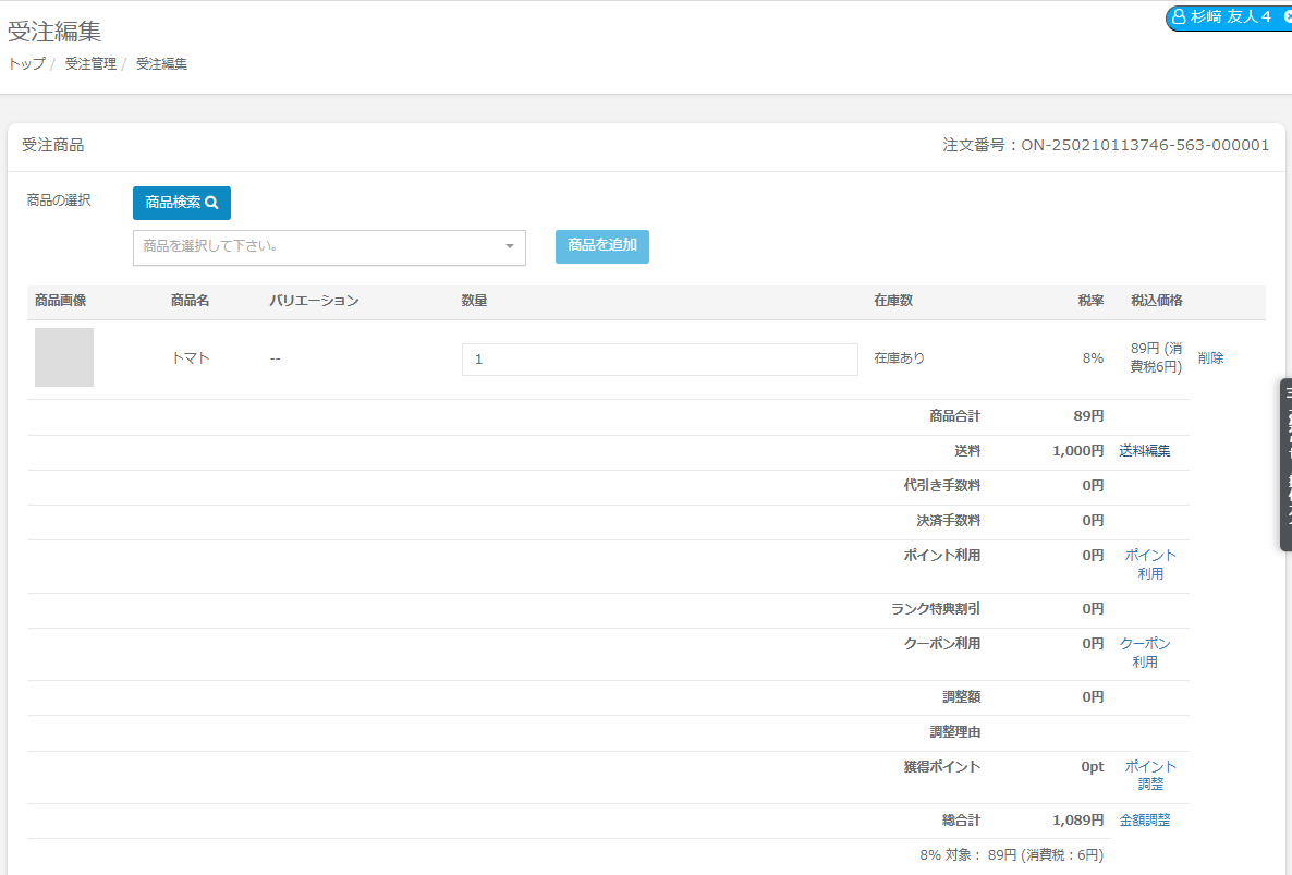 管理画面からの注文の場合