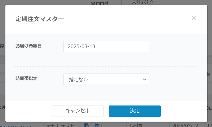 ※定期注文マスターで定期注文を編集した場合、変更は次回生成される定期注文より反映されます。すでに定期注文が生成されている場合、該当の定期注文には変更が反映されませんので、ご注意ください。