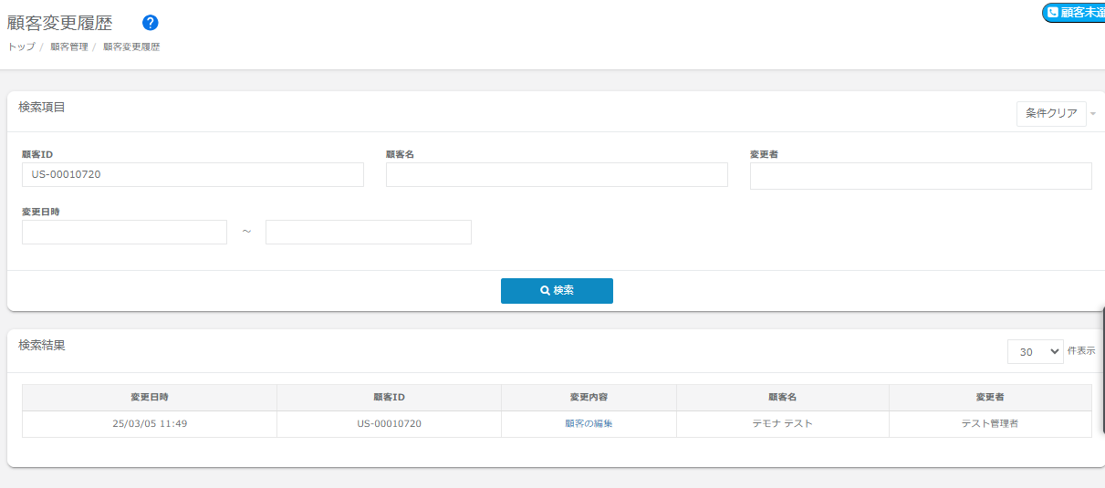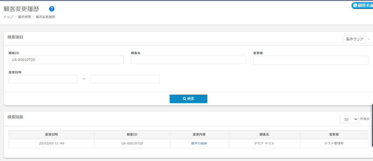 ②リンクをクリックいただくと、対象の顧客の顧客変更履歴に直接遷移することが可能です。