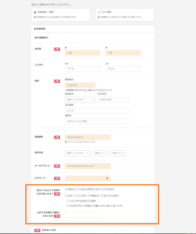 ▼【フロント】新規会員の購入情報入力画面(/checkout/register)