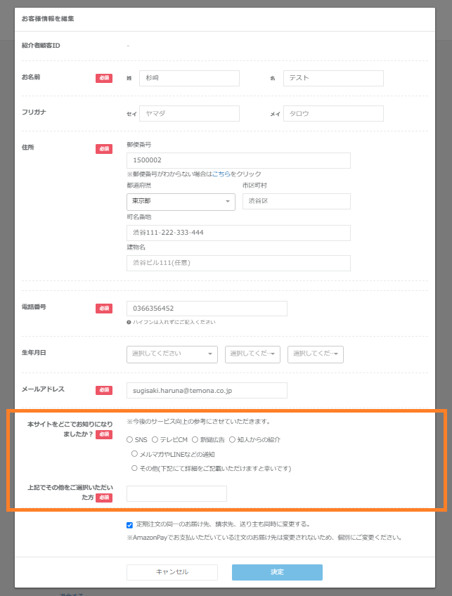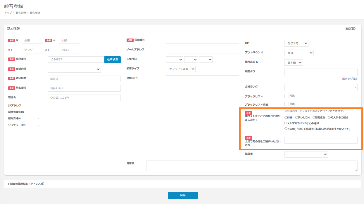 ▼【管理画面】受注管理>注文登録>顧客情報登録欄