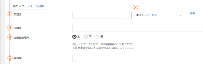 ⑤カスタムフォーム内での表示順をご設定いただけます。半角数字でご入力ください。