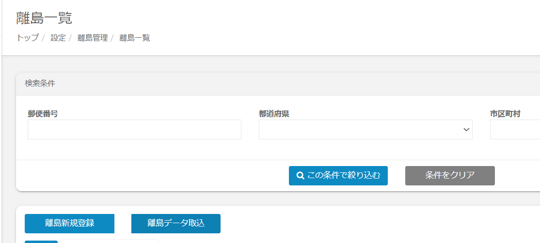 ④管理画面の【離島一覧】に戻り、「離島データ取込」をクリックします。