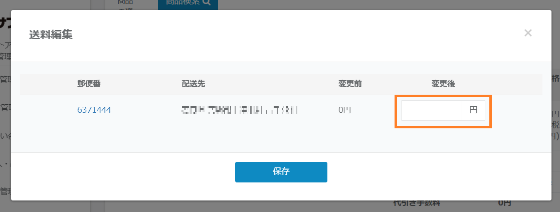 ⑥変更後の送料(税込み)を入力し、保存をクリックします。