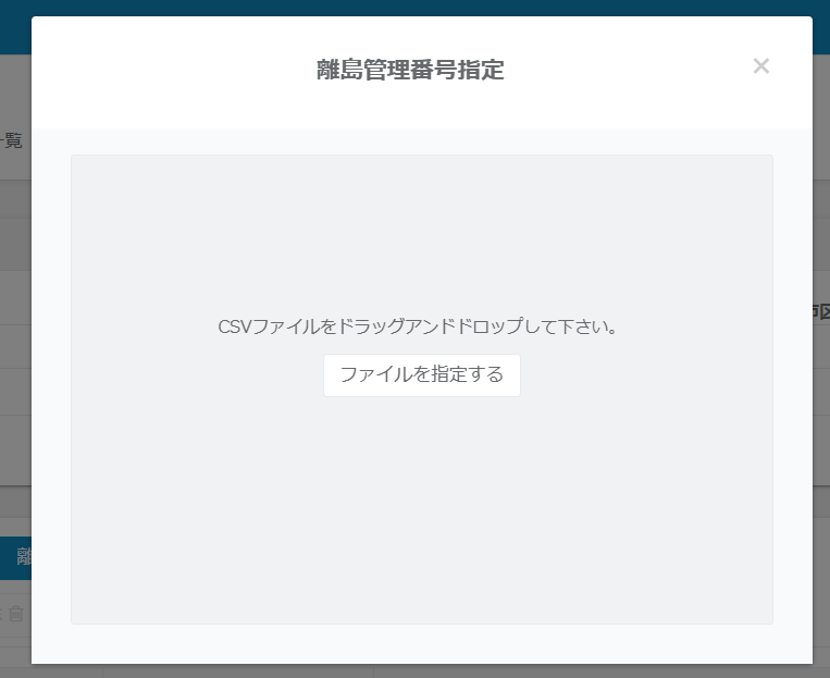 ⑤離島のcsvデータのファイルを指定するかドラッグアンドドロップすることでセットし、「データアップロード」をクリックします。