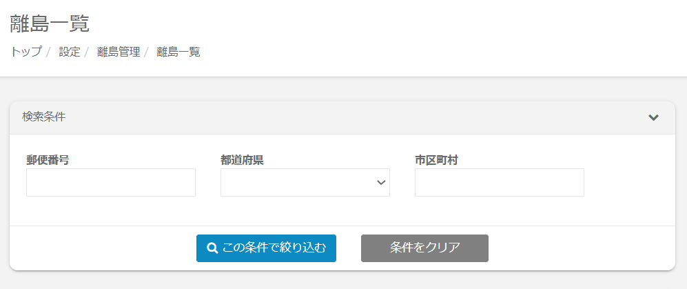 ※すべての項目に入力がない場合、すべての離島データが表示されます。