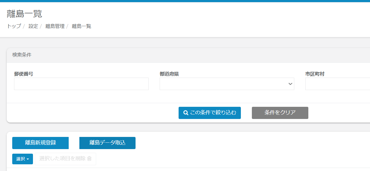 ⑦離島データが正しく取り込まれた場合、離島一覧にデータが表示されます。