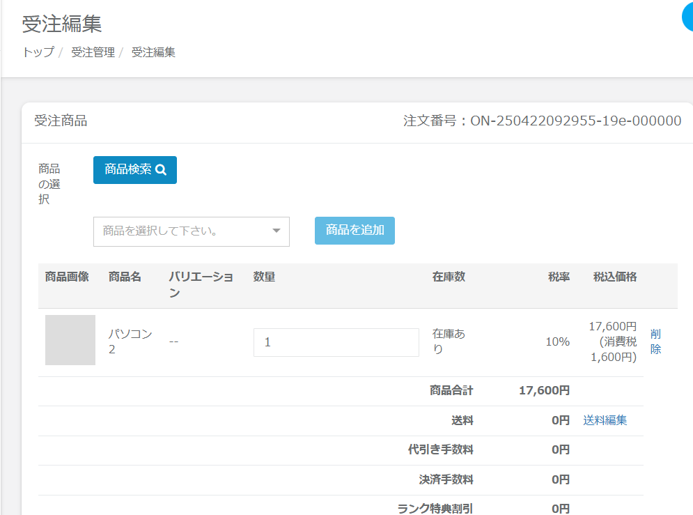 ※Webからの注文の場合、出荷停止の注文として登録されます。