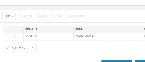 出荷なし商品の登録を行う場合はこちらのボタンより商品の登録を行います。