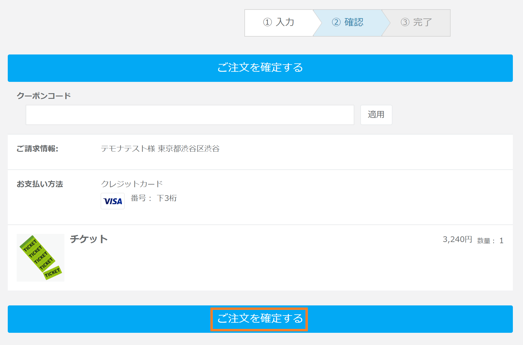 ④注文情報確認画面が下記となります。間違いがない場合は、「ご注文を確定する」をクリックします。