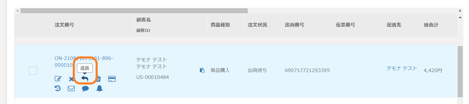 ②注文を取り消す場合は「返品」処理にてご対応ください。