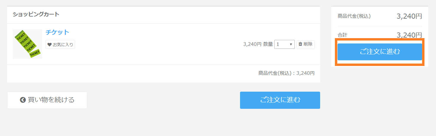 ②「ご注文に進む」をクリックします。