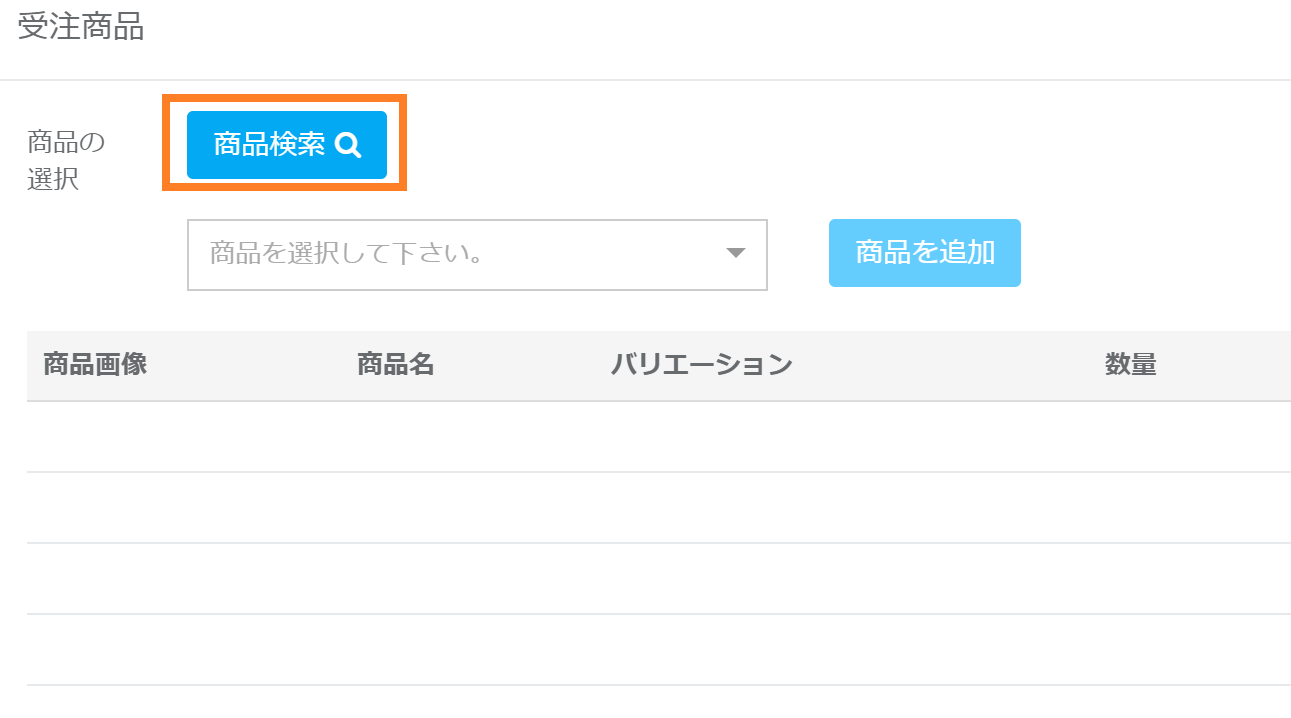 ②受注商品欄の「商品を検索」をクリックします。