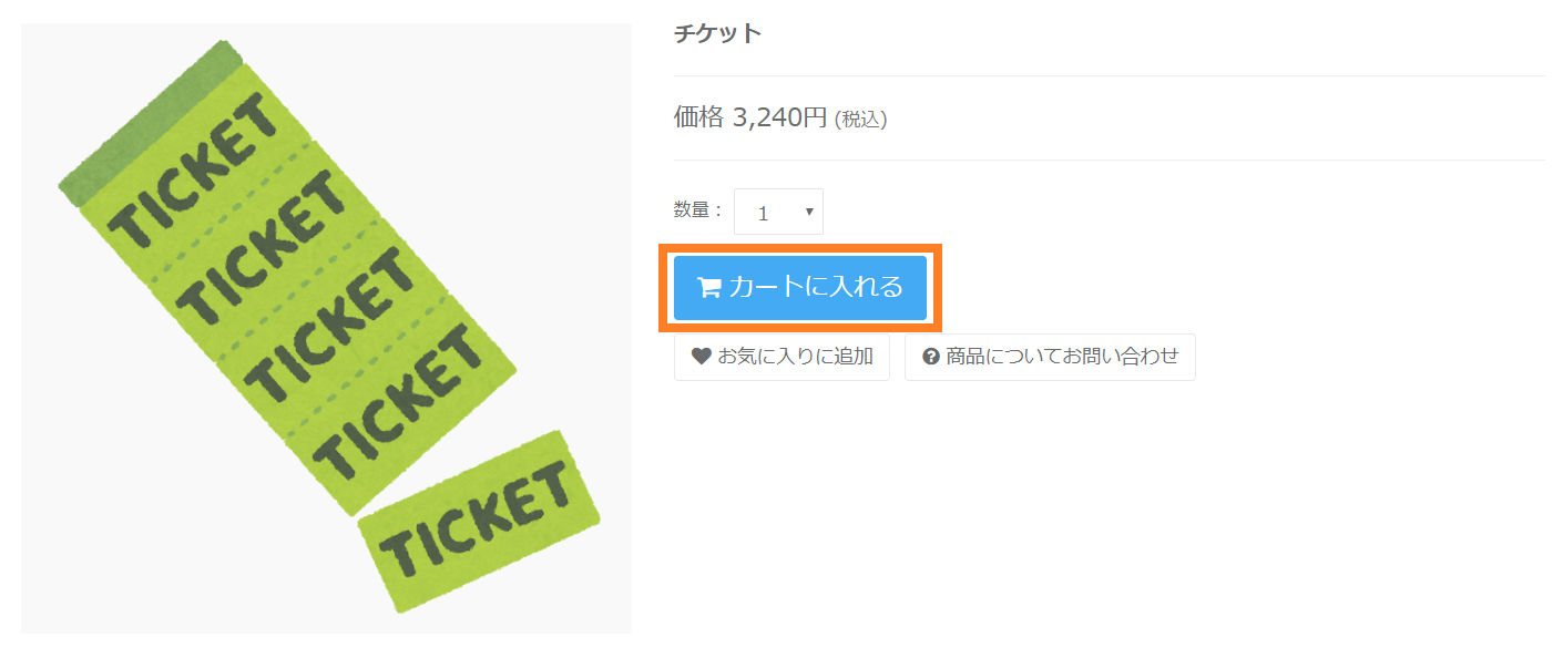 ①商品詳細ページより「カート」に入れるボタンをクリックします。