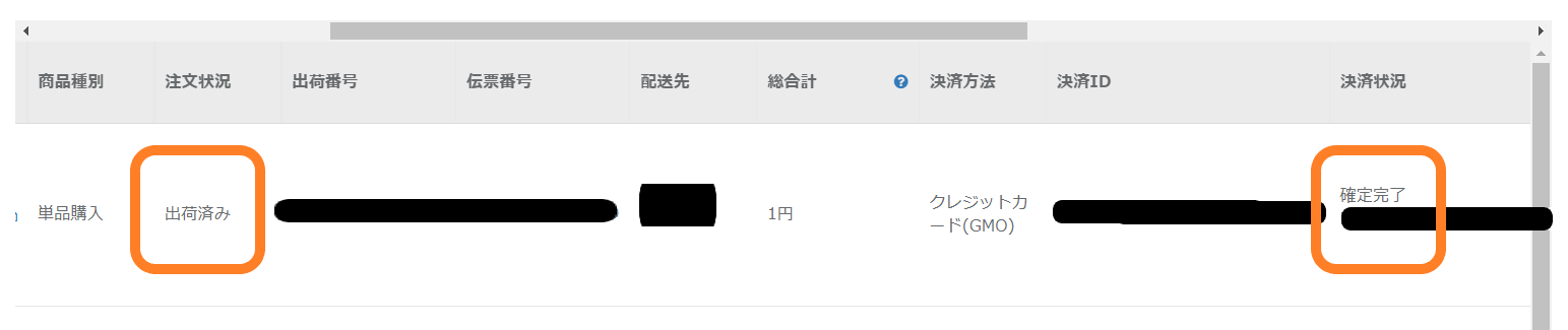 - 通常商品の場合受注後は「出荷待ち」状態となりますが、出荷なし商品の場合は受注した際に「出荷済み」となるため出荷作業(決済確定作業)を行う必要がありません。定期コースの場合も、子注文生成されたらすぐに「出荷済み」ステータスとなります。 出荷なし商品のステータスについて詳細はこちらをご確認ください。