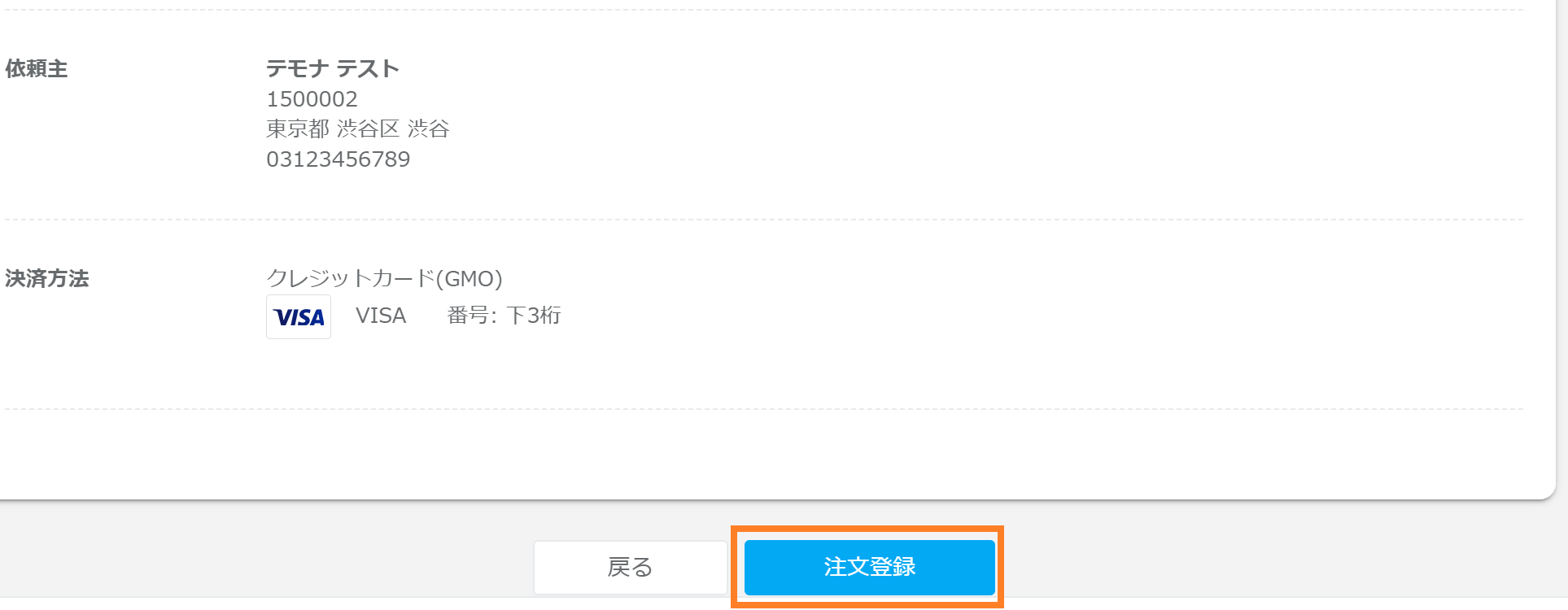 ⑥確認画面で内容に問題がない場合は、「注文登録」で注文情報を確定させます。