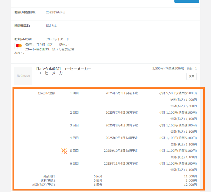※決済予定日が休業日に重なると前倒しになるため、定期5回目のみ1日早い決済予定日となっております。