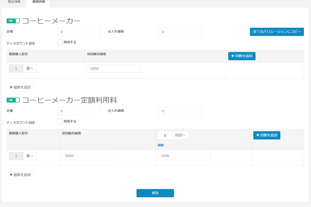 ※出荷なし商品の初回販売価格は基本反映されないため、定期1回目の価格をご入力ください。