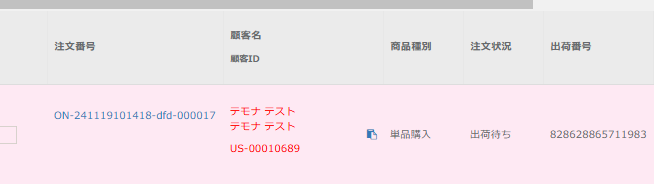 - 検索ボタンを押下すると、条件に当てはまる顧客の注文が表示されます。