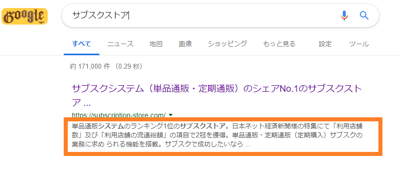 | サイトの概要 | ディスクリプション(description)が設定されます。 ※表示イメージはこちら | – |