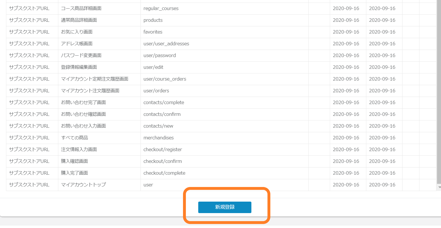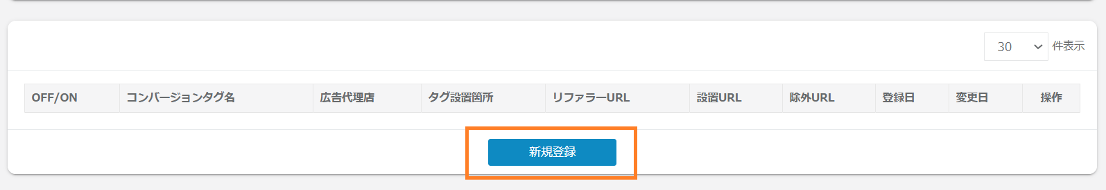 ①【販促管理】>【タグ管理】>【コンバージョンタグ】画面にて、「新規登録」ボタンをクリックします。