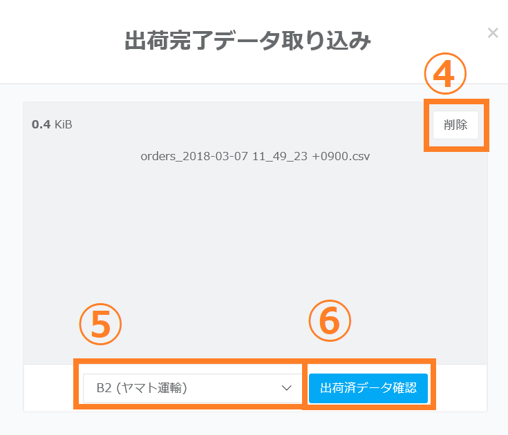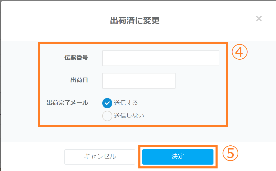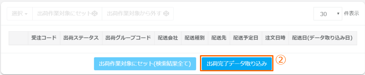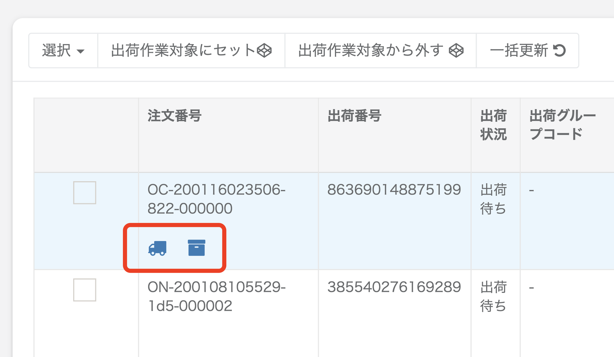 ①CSV経由で出荷完了データ取り込みをする方法ではなく、管理画面より手動で出荷ステータスの更新も可能でございます。
