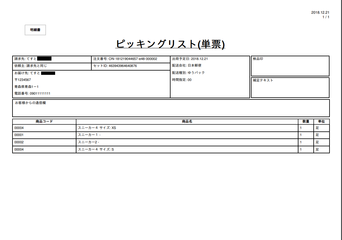 注文別ピッキングリストは注文毎に一枚のピッキングリストで確認が出来ます。