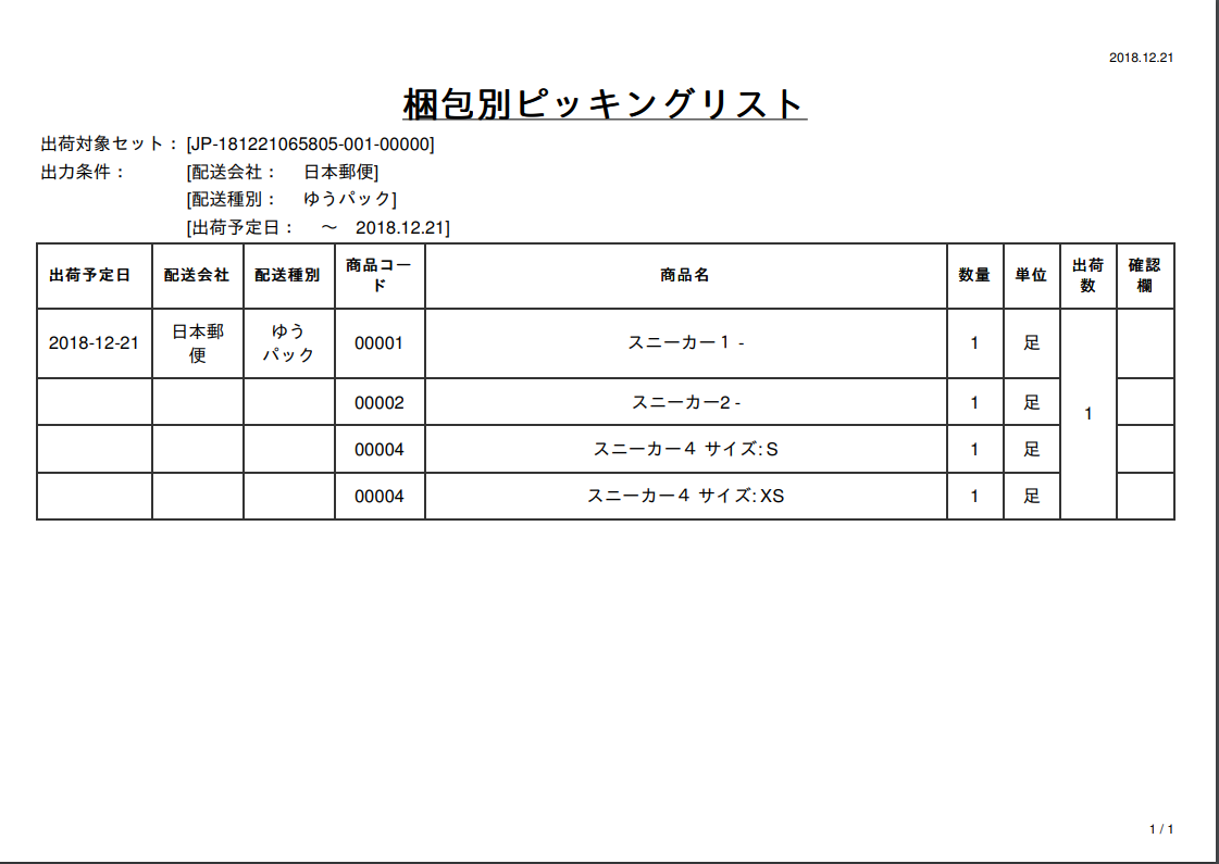 梱包別ピッキングリストは、同梱パターン毎に必要な個口数を確認する事が出来ます。