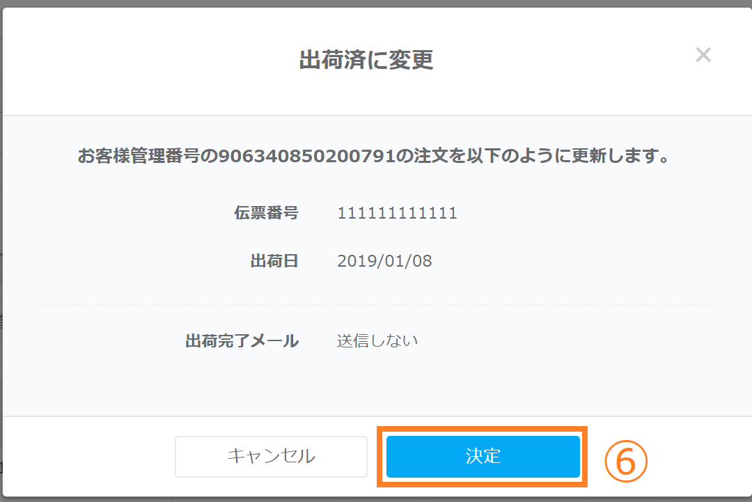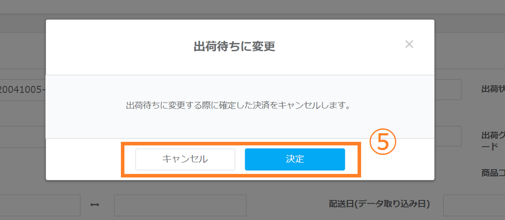 この処理を行った時点で③で選択した注文のステータスが「出荷待ち」に戻り、受注管理から注文の編集が可能となります。