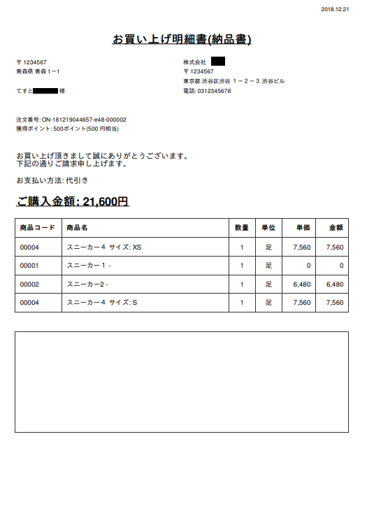 ※納品書は請求先情報とお届け先情報が異なる場合のみダウンロード可能です。
